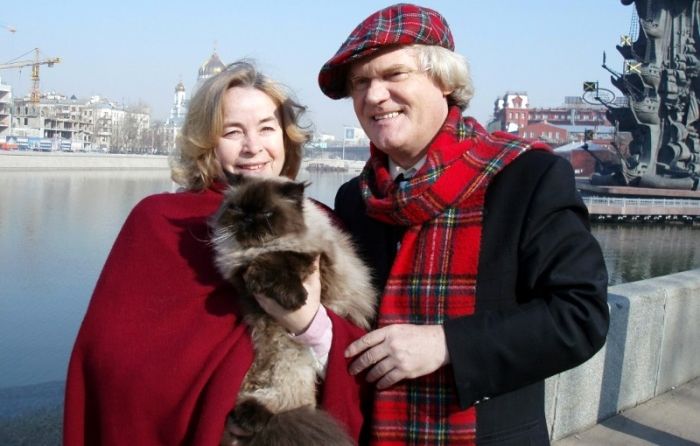 Юрий и Елена Куклачевы с кошкой. / Фото: www.radiuscity.ru