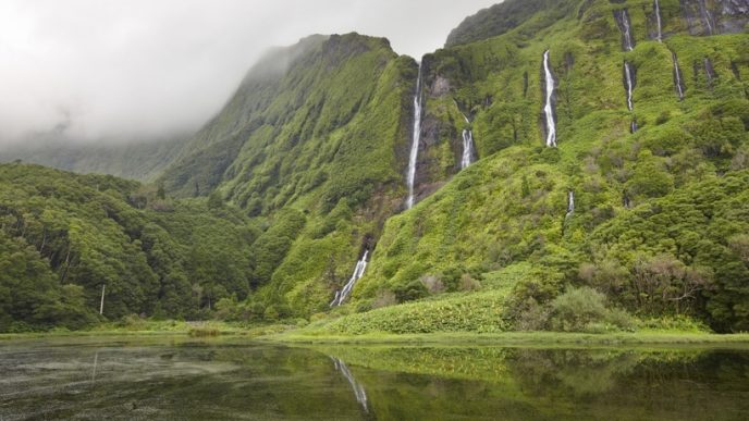 Остров знаменит живописными озерами, расположенными в кратерах потухших вулканов, и разнообразием полевых цветов.