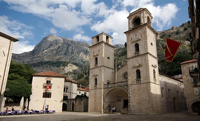 Кафедральный собор в готическом стиле с двумя башнями-колокольнями был построен в честь Святого Трифона, который является покровителя города Котор.