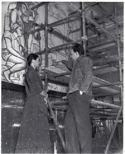 Диего Ривера и Фрида Кало в холле Рокфеллеровского центра. 1933