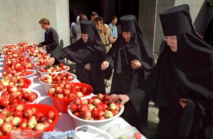 11. Монахини покупают яблоки на Спас. Август 1996 года