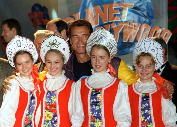 12. Арнольд Шварценеггер в Москве на открытии ресторана «Планета Голливуд», 1996 год