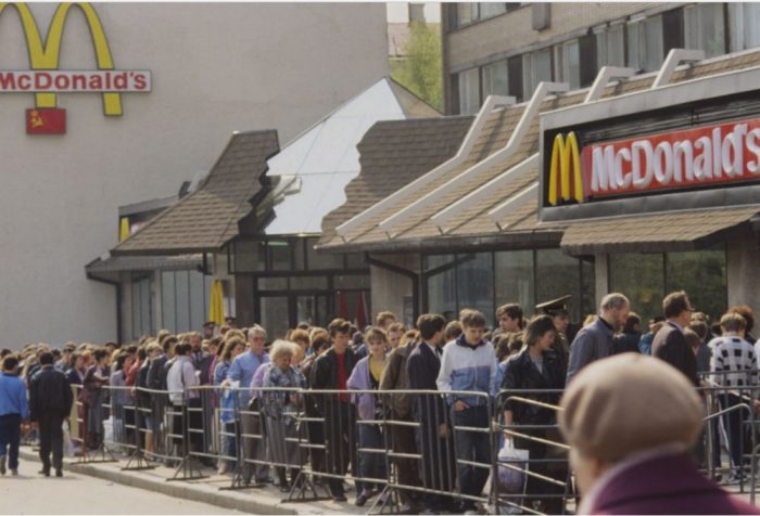 Огромная очередь в Макдональдс. СССР, 1991 год.