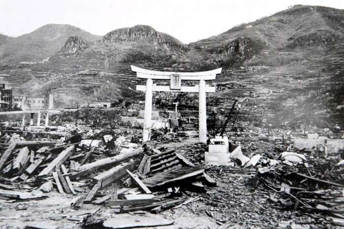 Разрушения на территории Нагасаки после атомной бомбардировки.