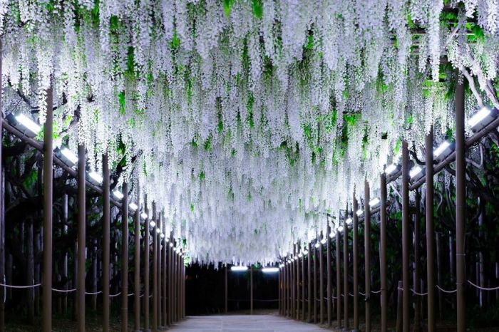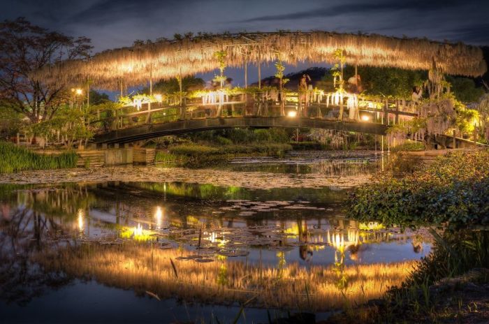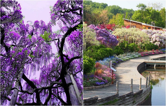 Весна – прекрасное время, чтобы отправиться в Японию. Пожалуй, все знают о сакуре, которая зацветает в это время года, и далеко не всем известно о глицинии, которая тоже распускается весной. 2 часа езды от Токио на поезде необходимо, чтобы попасть в Цветочный парк Асикага и увидеть невероятное зрелище. Некоторым из деревьев в парке более 150 лет, а их цветение невероятно красиво!
