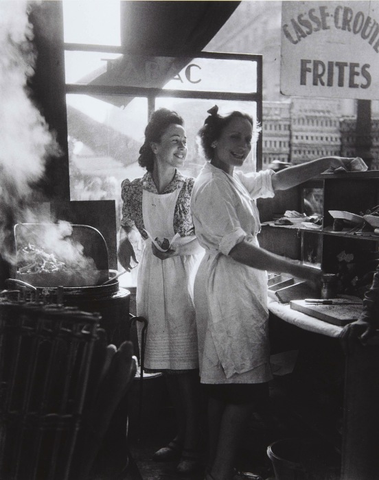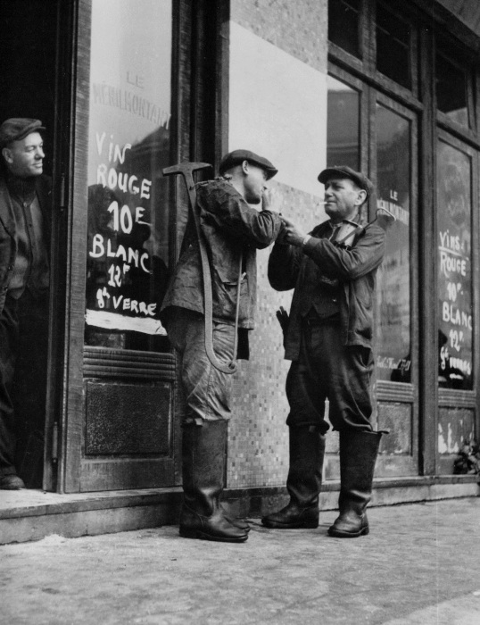 Рабочие у входа в кафе Менильмонтан в 1947 году.