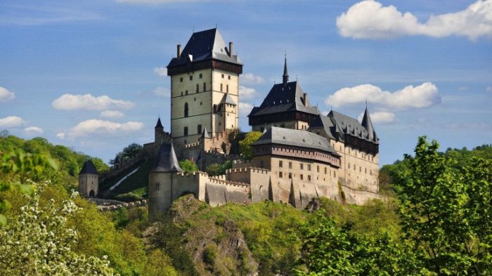Бывшая летняя резиденция короля Чехии и императора Священной Римской империи — Карла IV расположена на неприступной скале высотой более 70 метров.